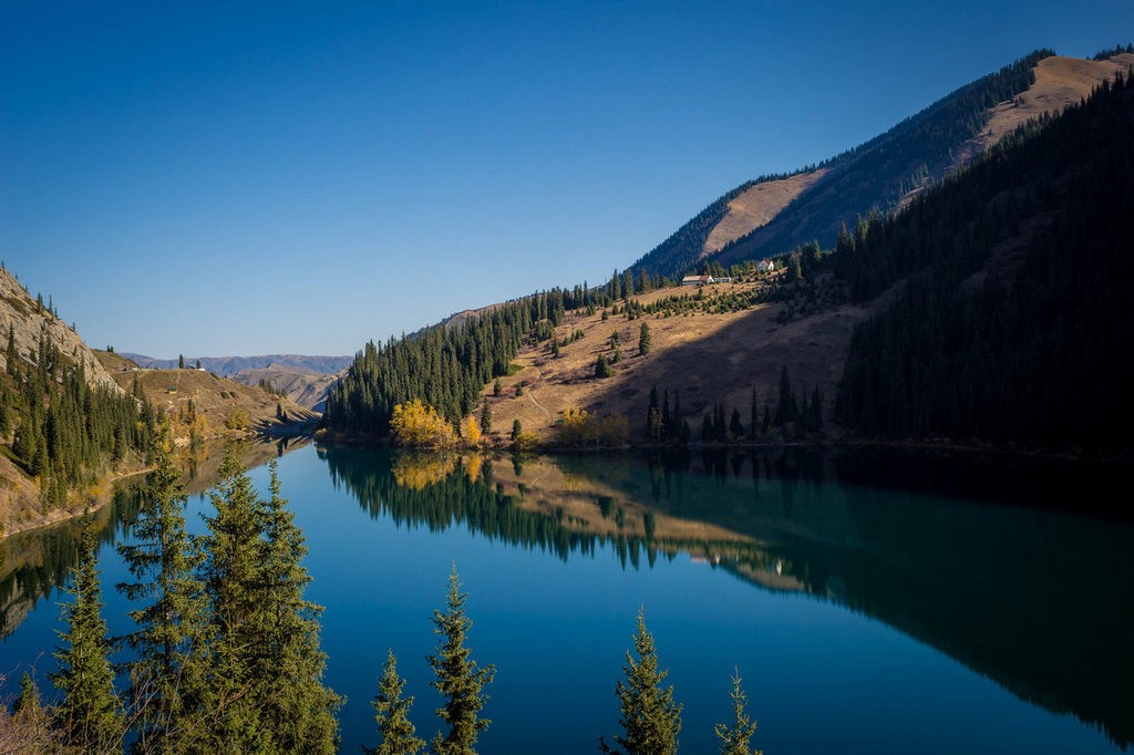 The Kolsai Lakes are a system of three lakes, nestled among the hills of the Northern Tien Shan Mountains, approximately 300km east of Almaty. They are also called “The Pearl of the Northern Tien Shan”. The pure water is so transparent that when the sun is out, the surrounding forests, hills and snowy mountain peaks are mirrored in the water. The lakes are surrounded by spruce trees, alpine meadows, and mountain pastures.